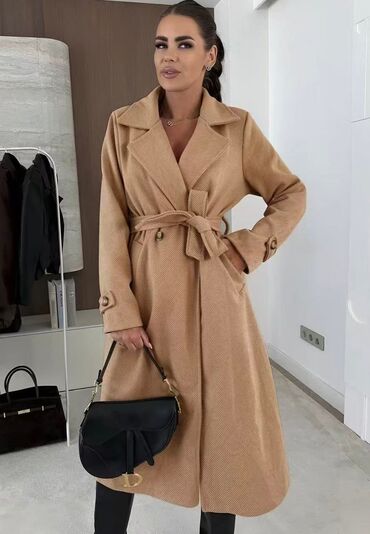 Ženski elegantni kaput sa krznastim okovratnikom - Model: dvoredni, struk naglašen kaišem koji se vezuje u mašnu - Dugački rukavi sa ukrasnim manžetnama i dugmadima - Dužina do sredine butine, kla...