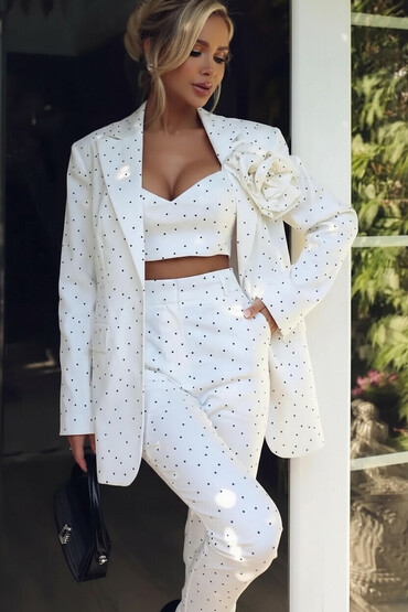 💫Ženski dvodelni poslovni komplet – strukirani blejzer i široke