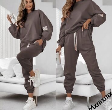 Ženski komplet trenerke – duks i donji deo - Kroj: opušten duks sa okruglim izrezom i dugim rukavima + donji deo sa lastišem i učkurom u struku; rebraste manžetne na rukavima i nogavicama - Materi...