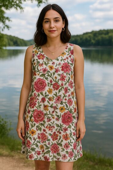 Lagana haljina sa cvetnim dezenom i šljokicama