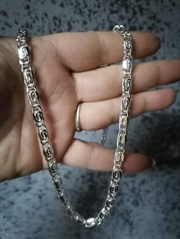 Masivna ženska ogrlica sa ukrštenim lancima u dve boje. Dizajn čine dva široka lanca: jedan u zlatnoj, drugi u srebrnoj nijansi, položeni jedan preko drugog duž cele dužine. Centralni deo je naglaš...