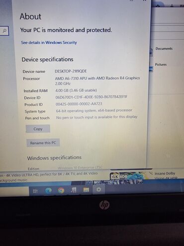HP laptop crne boje, pogodan za svakodnevnu upotrebu. Ima instaliran Windows 10 Enterprise LTSC 64-bit operativni sistem i AMD A6 procesor. Laptop ima 4GB RAM memorije i 128GBssd prostora za skladištenje podataka. Idealan je za rad od kuće, učenje ili zabavu.dve grafike r4 moze dosta igri da igra baterija vise nego odlicna top stanje
