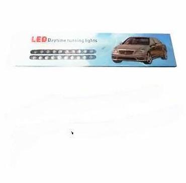 Paket: LED DRL traka (prikazana na ambalaži “LED Daytime running lights”). Idealno za modernizaciju izgleda i poboljšanje dnevne vidljivosti vozila.