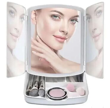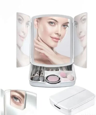 Ovo prenosivo ogledalo ima trostruko ogledalo za odraz, sa prostorom za odlaganje šminke! 💅