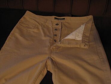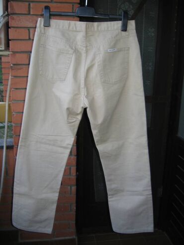 Muske pantalone marke Legend braon (oker) boje, obim struka 78 cm, dubina napred 29 cm, dubina nazad 35 cm, duzina nogavica od sava izmedju nogu 77 cm (nogavice su skracene na ovu meru kod krojaca)...