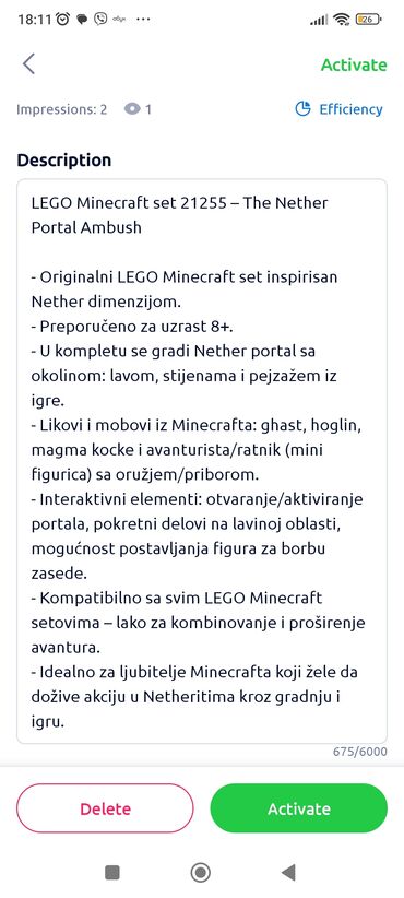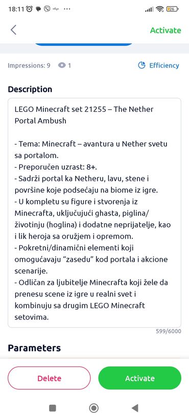 - Kompatibilno sa LEGO Minecraft setovima – lako za kombinovanje i proširenje avantura.