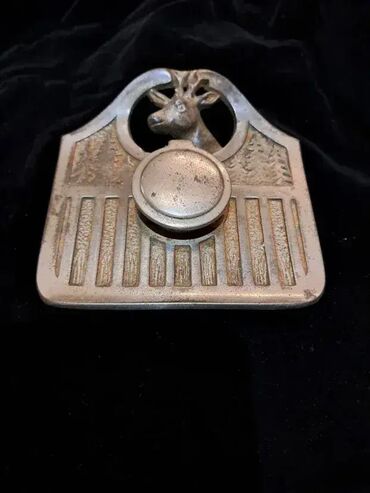 Pokupiti na licu mestaLepa mala mastionica sa glavom srndaca. Nedostaje staklo za mastilo. Dimenzija 12x12cm.