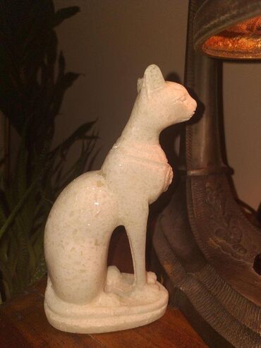 Pokupiti na licu mestaLepo uradjena egipatska mačka od svetlucavog kamena, ima oštećenje, nedostaje joj uvo. Visina 13 cm.