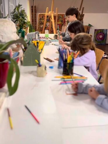 - Kreativna radionica crtanja, slikanja i modelovanja u prijatnom ateljeu sa štafelajima, velikim radnim stolovima i obiljem materijala.