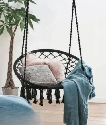 Elegantna crna pamučna pletena ljuljaška koja se prilagođava obliku tela, pružajući maksimalnu udobnost i opuštanje. Zahvaljujući izdržljivoj konstrukciji, pogodna je za korišćenje u dvorištu, na terasi ili u kući.