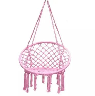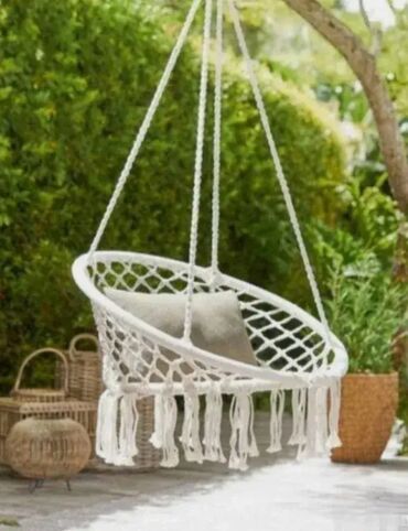 Viseća stolica sa stalkom – boho dizajn - Okrugla viseća stolica od čvrstog užeta u makrame stilu, sa resama. - Stabilan metalni ram A‑oblika, obložen za dodatnu izdržljivost i sigurnost. - Dvostr...5 000 RSD