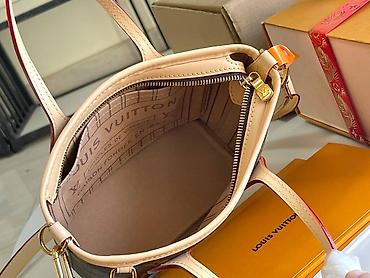- Unutrašnjost: tekstilna postava sa LV natpisima; bočni pregradak/džep