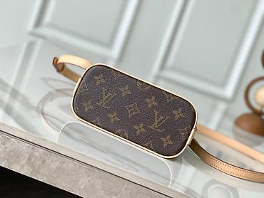 - Donja strana: monogram platno sa kontrastnim kožnim obrubom.