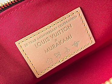 - Unutrašnjost: tekstilna postava u intenzivno crvenoj boji, kožna oznaka sa utisnutim “LOUIS VUITTON x MURAKAMI – 20 Year Anniversary Celebration”, bočni slip/džepić.