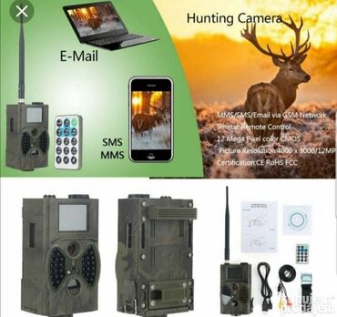 Ova lovčka kamera je savršen alat za snimanje i praćenje divljači, kao i za zaštitu objekata kao što su pčelinjaci, vikendice i voćnjaci. Kamera radi na baterije (8 baterija omogućava rad od 1 do 3 meseca, u zavisnosti od vremenskih uslova i aktivnosti). Detektuje pokret i šalje slike na vaš mobilni telefon ili računaru putem MMS poruke ili direktno na vašu email adresu.