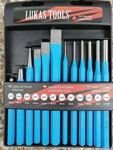 - Tipovi alata u setu: ravna dleta, šiljci i izbijaci/udarni probijači