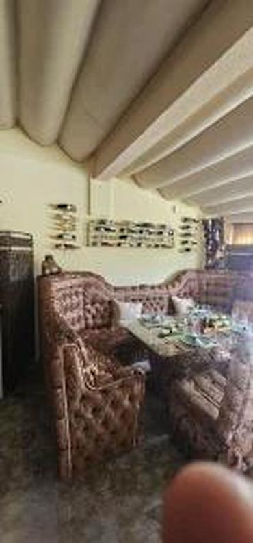Trodeleni set za dnevnu sobu – trosed i 2 fotelje u bordo/crvenoj boji sa drvenim detaljima. - Trosed sa tri sedišna segmenta, visokim naslonom i ukrasnim prošivima. Tapaciran mekim štofom, sa dek...