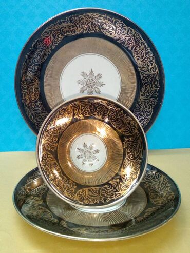Porcelanski rucno oslikani tanjir, sa zlatnom 24k bojom. Precnik tanjira 25cm.