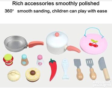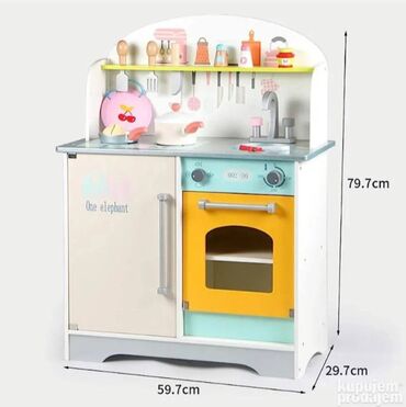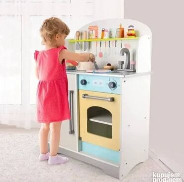 Deca koja se igraju drvenim igračkama mogu se osećati kao odrasli. Imaju sposobnost da imitiraju svakodnevne aktivnosti kod kuće pa se odlično zabavljaju. Koristeći drvene kuhinje deca se osećaju kao pravi kuvari koji pripremaju jela za celu porodicu tokom beskrajne zabave. Biće kao Master Chef Junior kod kuće. Materijali koji se koriste u proizvodnji igračaka su pažljivo odabrani i visokog kvaliteta. Posebno su dizajnirani čak i za najmlađu decu. Sve to zarad njihove bezbednosti. Karakteristike proizvoda Igračke nemaju oštre ivice i opasne elemente. Kuhinja se može koristiti dugi niz godina kako kod kuće tako iu zajedničkoj prostoriji ili čekaonici pružajući mnogo sati odlične zabave i beskrajnih osmeha. Odlična zabava za decu Svako dete koje kreće u kulinarsku avanturu sanja o kuhinji pa će to biti savršen poklon za vaše dete. Estetska pažljivo izrađena drvena kuhinja će se uklopiti ne samo u dečiju sobu već iu dnevnu sobu. Uz svaki set je priloženo jasno uputstvo za upotrebu sa slikama i numeracijom svih elemenata tako da montaža kuhinje neće praviti probleme. Precizno izvođenje detalja i detalja završne obrade kuhinje Vrata pećnice i mikrotalasne pećnice se zatvaraju magnetom čuje se škljocaj kada okrenete dugme gorionika a metalna posuda deluje kao sudoper. Zahvaljujući promišljenim policama i šinama uvek možete održavati red u kuhinji.