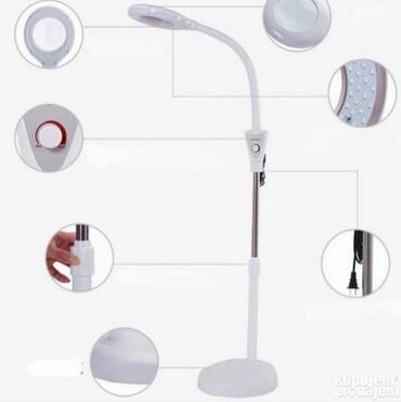 Podna kozmetička led lampa sa lupom. Podešava se po visiniKozmetičari mogu koristiti lupu kod oblikovanja obrva, nadogradnje svilenih trepavica i uklanjanja ožiljaka i drugih tretmana lica.
