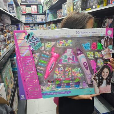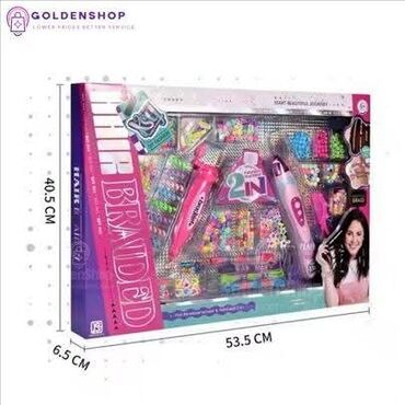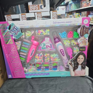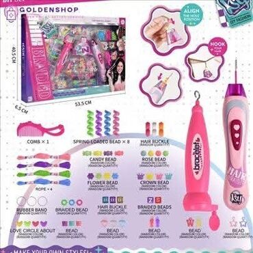 Na pakovanju je prikazana devojka koja nosi pletenice sa perlama i narukvice.