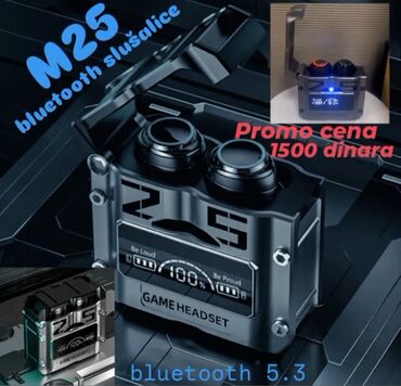 Promo cena: 1500 dinara Moguće je lično preuzimanje u Beogradu iii slanje kurirskim službama. M25 Bluetooth slušalice – gejmerski dizajn sa LED displejem na kućištu.