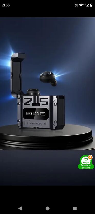 - Digitalni ekran prikazuje procenat baterije i status obe slušalice