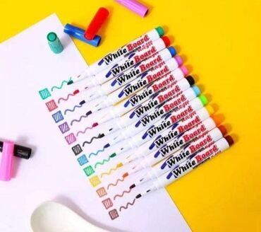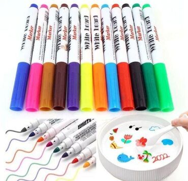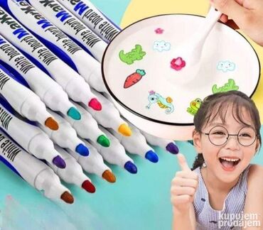 Magični flomasteri sa 12 komada i kašikom za nanošenje boje. Originalna i zabavna aktivnost za decu. Nacrtajte crtež na kašici, spustite je u vodu, i crtež ostaje u vodi.