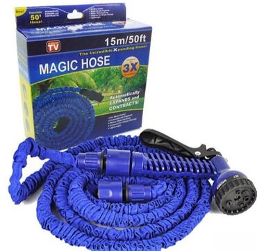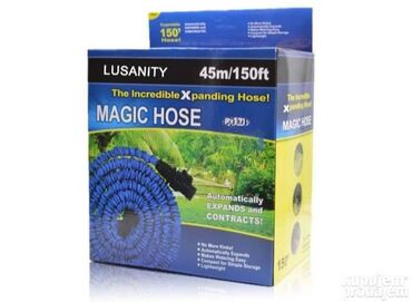 Magično rastegljivo baštensko crevo za zalivanje pod pritiskom vode. Kada se voda ispusti iz creva, ono se automatski skuplja na dužinu od 10 m, što ga čini veoma lakim za skladištenje jer ne zauzima puno prostora.