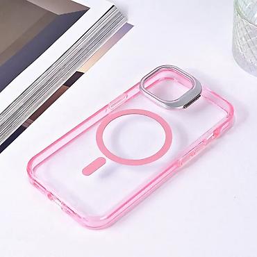Magsafe transparent case for iPhone 14 6.1 in pink color. Provides protection for your phone.