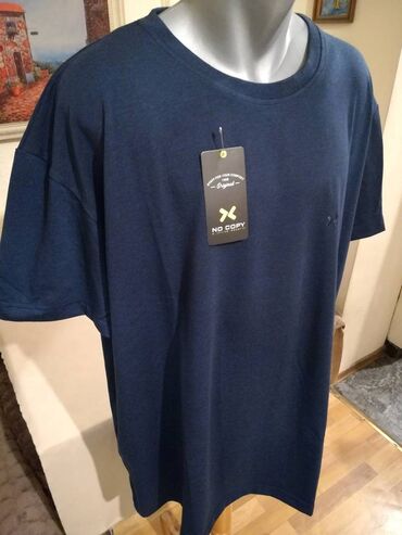 Nova muska pamucna majica No Copy Veliki model 6XL Teget. Novopazarska. Odlicna muska pamucna majica za muskarce svih uzrasta. Uradjena od vrlo prijatnog i kvalitetnog pamuka. Vrlo lepog dezena, lako se kombinuje sa bilo kojim komadom garderobe. Super ide na farmerke, trenerke, bermude i pantalone. Odlicna muska majica za sve prilike, idealna za posebne prilike i svecanosti. Majica je izuzetno veliki model, mogu je nositi i osobe sa preko 130 kg. Pamucna muska majica u velikom broju No Copy je nova sa etiketom.