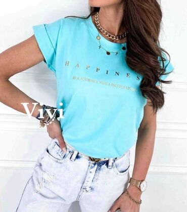 Ženska majica sa kratkim rukavima i okruglim izrezom. Svetla