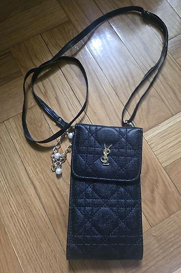 Mala torbica preko ramena za mobilni telefon ili šminku i sitnice. crna, piše napred YSL. Nisam je nikad nosila, samo mi stoji.