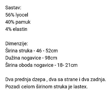 - Džepovi: dva kosa prednja, dva cargo bočna sa preklopom i dugmetom, dva nasivna zadnja