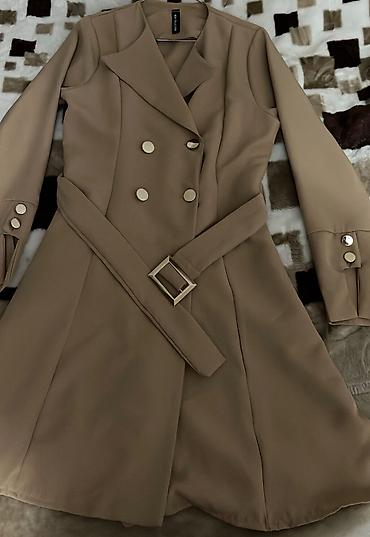 Ženski mantil/trenč kaput, tamno braon boje. - Klasičan dvoredni kroj sa šest dugmadi sprijeda - Pojas u struku sa kopčom za dodatno prilagođavanje - Široke rever kragne i rameni poklopci za elega...