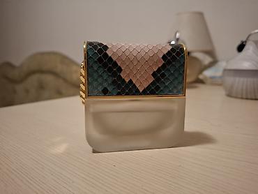 - Bočica u prepoznatljivom obliku mini torbice sa zlatnim lancem