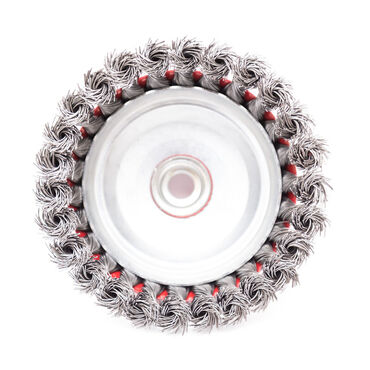 Mašinska upletena lončasta čelična četka Ø125mm sa prihvatom M14, namenjena za ugaone brusilice. Idealna za skidanje boje, rđe i prljavština sa metalnih površina uz veću silu. Maksimalni broj obrtaja: 6500 o/min. Mašinska lončasta žičana upletena čelična četka Ø125mm dizajnirana je za rad sa ugaonim brusilicama i omogućava efikasno uklanjanje boje, rđe i tvrdokornih nečistoća sa metalnih površina. Zahvaljujući izdržljivim čeličnim vlaknima i upletenoj strukturi, pruža visoku efikasnost i dug vek trajanja čak i pri intenzivnoj upotrebi. Opremljena je standardnim prihvatom M14, što je čini kompatibilnom sa većinom ugaonih brusilica. Maksimalni broj obrtaja iznosi 6500 o/min, osiguravajući stabilan i siguran rad. Idealna je za profesionalnu i hobi upotrebu u industriji i zanatskim radovima.