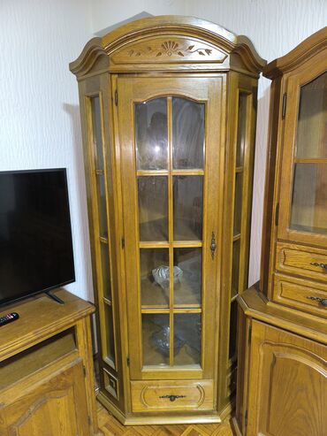 Masivna vitrina/kredenca od punog drveta, klasičnog dizajna u toploj hrast medenoj boji