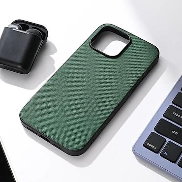 Futrola za telefon Comicell – Fashion Case za iPhone 15 Pro. - Model: Iph 15 Pro (naznačeno na pakovanju) - Dizajn: pleteni/kvadratni reljef u maslinasto zelenoj boji - Ukras: metalni lančić sa na...