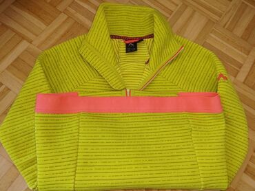 - Boja: neon žuta sa tankim tamnim prugama; detalji u koralno-ružičastoj (zip, manžetne i donji rub)