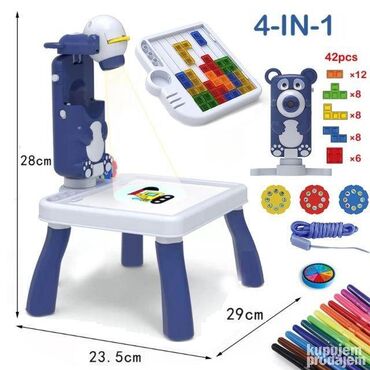 U paketu: sto sa projektorom, tetris i flomasteri