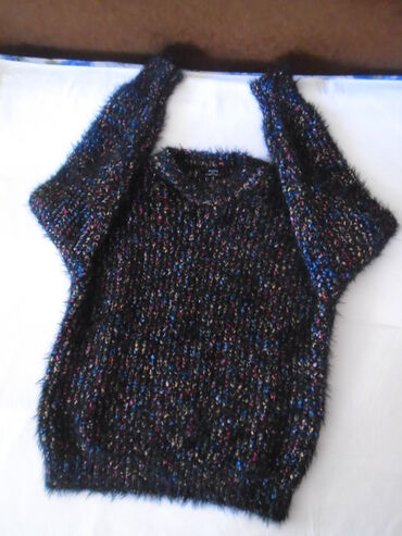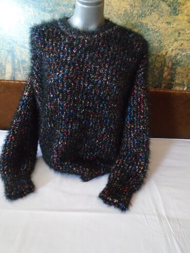 Drugi materijalČupavi Bershka džemper u više boja. Može biti i svečan jer crne dlačice diskretno svetlucaju. Jednom nošen, M veličine.