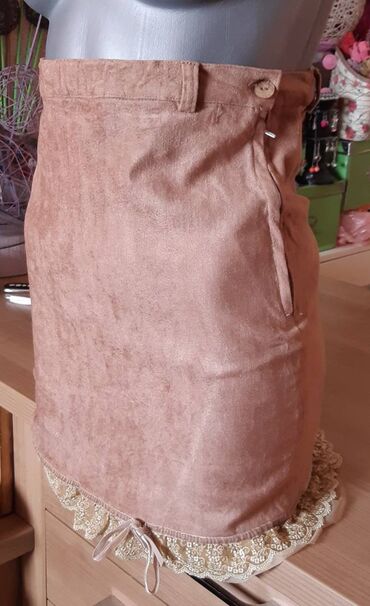 Drugi materijalSuknja Melone – baršunasta, bež/karamel nijansa sa ukrasnom čipkom
