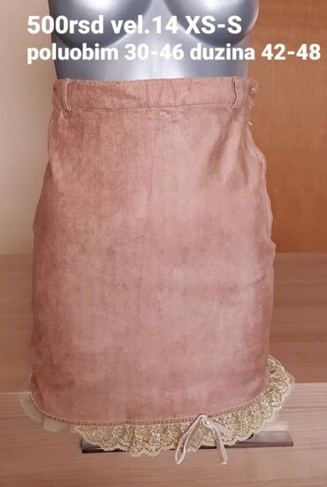 Suknja u bež/boji kože, ravnog kroja, sa postavom koja je glatka „kao svila“. Tanja tkanina, prijatna za nošenje. Zatvaranje pozadi (rajfešlus). Mere: - Poluobim struka: 41 cm - Poluobim kukova: ...