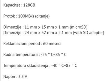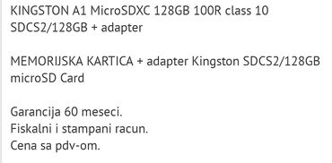 Memorijska kartica 128 GB,nova,garancija 60 meseci,saljemo postom