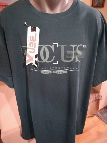 Nova muska pamucna majica Benx u velikom broju. Novopazarska. Odlicna muska pamucna majica za muskarce svih uzrasta. Uradjena od vrlo prijatnog i kvalitetnog pamuka. Vrlo lepog dezena, lako se kombinuje sa bilo kojim komadom garderobe. Super ide na farmerke, trenerke, bermude i pantalone. Odlicna muska majica za sve prilike, idealna za posebne prilike i svecanosti. Majica je izuzetno veliki model, mogu je nositi i osobe sa preko 100 kg. Pamucna muska majica u velikom broju Benx je nova sa etiketom.