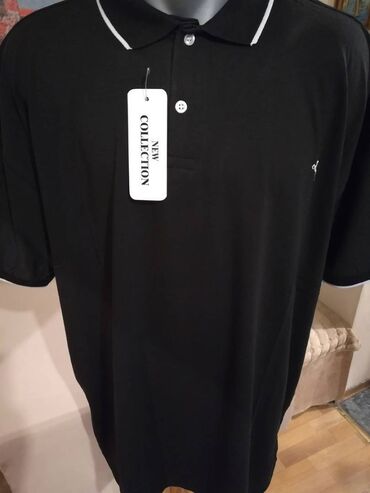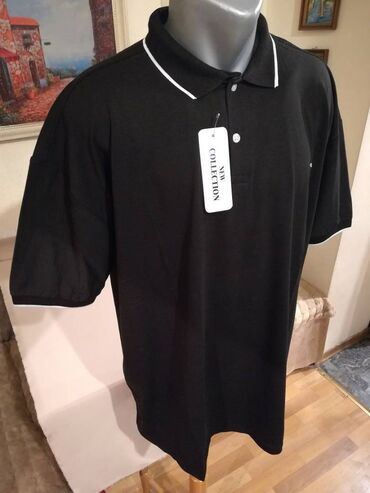 Nova muska pamucna polo majica sa kragnom Elvis Crna 8XL. Vrlo dobra muska majica za muskarce svih uzrasta. Uradjena od prijatnog i kvalitetnog pamuka. Vrlo lepog dezena, lako se kombinuje sa bilo kojim komadom garderobe. Majica ima kragnu, kopca se na dugmice i veoma je prijatna i komotna za nosenje. Odlicna, lepa i elegantna muska majica, idealna za svecane i posebne prilike. Super ide na farmerke, bermude i pantalone. Majica je prilicno velika i mogu je nositi muskarci sa preko 120 kg tezine. Dobra muska majica za svaki dan. Nova muska pamucna polo majica sa kragnom Elvis sa etiketom.