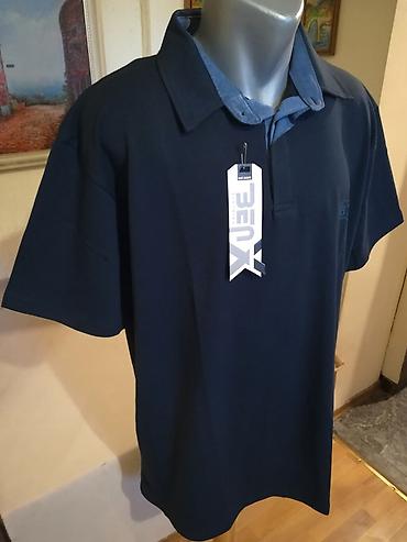 Nova muska pamucna majica sa kragnom Benx u teget boji. Odlicna muska majica za muskarce svih uzrasta. Uradjena od prijatnog i kvalitetnog pamuka. Majica ima kragnu, kopca se na dugmice i veoma je prijatna i komotna za nosenje. Odlicna, lepa i elegantna muska majica, idealna za svecane i posebne prilike. Super ide na farmerke, bermude i pantalone. Majica je prilicno velika i mogu je nositi muskarci od preko 120 kg tezine. Nova muska majica sa kragnom Benx sa etiketom.