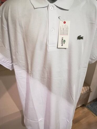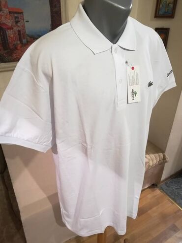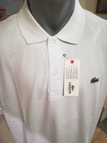 O trošku kupcaPokupiti na licu mestaNova muska pamucna markirana majica sa kragnom Lacoste Bela 4XL 5XL. Odlicna muska majica za muskarce svih uzrasta. Uradjena od prijatnog i kvalitetnog pamuka. Vrlo lepog dezena, lako se kombinuje sa bilo kojim komadom garderobe. Majica ima kragnu, kopca se na dugmice i veoma je prijatna i komotna za nosenje. Odlicna, lepa i elegantna muska majica, idealna za svecane i posebne prilike. Super ide na farmerke, bermude i pantalone. Dobra muska majica za svaki dan. Nova muska pamucna markirana majica Lacoste sa etiketom.