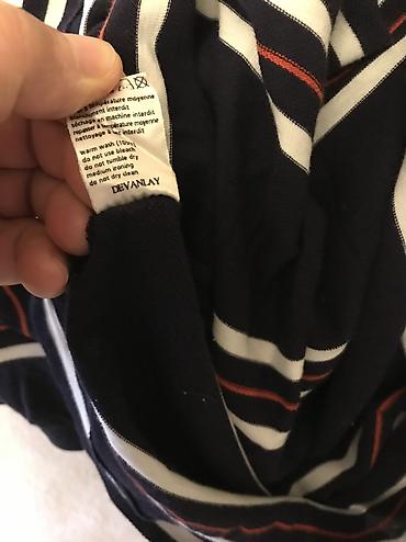 Crna majica Banana Republic, kratkih rukava, sa šarenim natpisom “BANANA REPUBLIC” na prednjoj strani u bojama duge. Klasičan okrugli izrez sa rebrastim rubom. Veličina: L (etiketa prikazuje “BANAN...